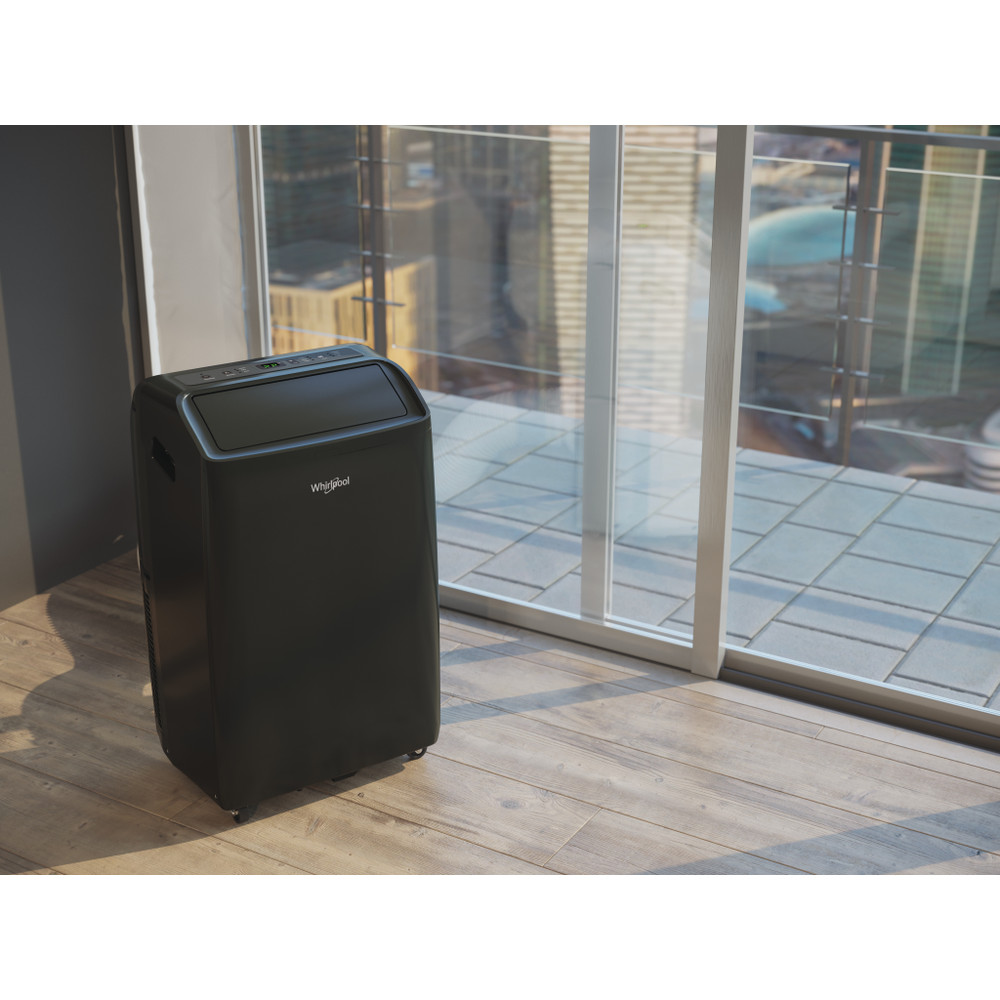 Přednosti této volně stojící klimatizace Whirlpool: třída energetické účinnosti A. Černá barva. Přenosná klimatizace pro snadné přemístění klimatizace kamkoli potřebujete. Zapnutí/vypnutí chlazení. 6. SMYSL, teplotní senzor automaticky vyhodnotí teplotu v místnosti a provede ideální kombinaci provozních funkcí, abyste získali ten nejlepší komfort.