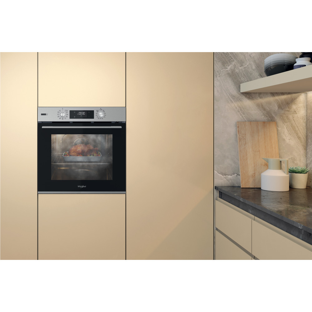 Přednosti této vestavné trouby Whirlpool: pokročilá elektrická technologie umožňující připravovat pokrmy s úsporou energie. Inovativní funkce Cook3, která umožňuje péct až tři různé pokrmy najednoubez rizika smíchání vůní. Dvířka trouby s tichým zavíráním pro snadnější používání.