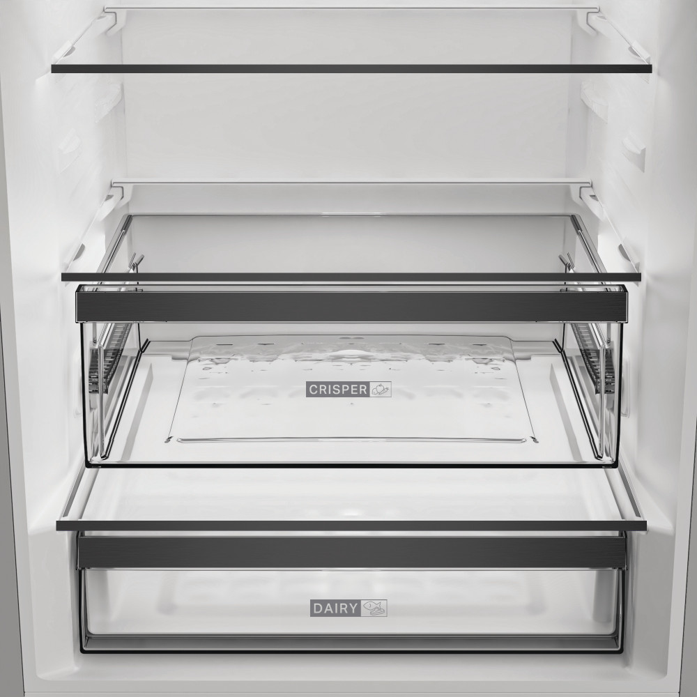 Přednosti této volně stojící kombinované chladničky Whirlpool: technologie No frost, beznámrazová technologie, která účinně zabraňuje tvorbě ledu v mrazničce tím, že snižuje úroveň vlhkosti. Vysoký spotřebič, který vyhoví potřebám vaší rodiny. Skleněné police s úpravou hrany, které poskytují pevnost, eleganci a mimořádnou bezpečnost. Senzory 6. SMYSL, které automaticky snižují teplotu uvnitř spotřebiče po přidání nových potravin, čímž snižují spotřebu energie. Robustní přihrádka na lahve pro bezpečné uložení lahví.