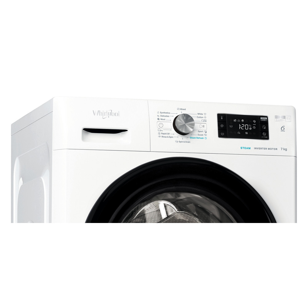 Přednosti této volně stojící pračky Whirlpool: bílá barva. Prostorná kapacita 7,0 kg. Vynikající energetická třída A. Rychlé, úsporné: 1400 ot./min. odstřeďování. Exkluzivní technologie 6. SMYSL, která dynamicky přizpůsobuje nastavení každé konkrétní náplni a zajišťuje ideální péči o všechny vaše tkaniny.