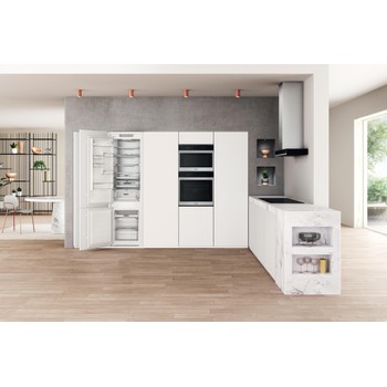 Přednosti této vestavné kombinované chladničky Whirlpool: bílá barva. Vysoký spotřebič, který vyhoví potřebám vaší rodiny. Skleněné police, které poskytují pevnost i eleganci. Ventilátor, který zajišťuje plynulé a rovnoměrné proudění vzduchu v prostoru spotřebiče pro doonalou cirkulaci vzduchu. Senzory 6. SMYSL, které automaticky snižují teplotu uvnitř spotřebiče po přidání nových potravin, čímž snižují spotřebu energie.